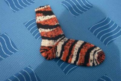 Dann habe ich aus einem amerikanischen Strickbuch Cool Socks warm feet die eine Socke ausprobiert. Das Muster gefällt mir gut ist so ähnlich wie die Picassosocke.