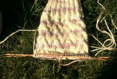 Ich habe auch etwas positives zu vermelden. Die Knitalongsocke passt mir gut. Das Muster zieht sich nicht zusammen wie ich zuerst dachte und es ist super einfach.