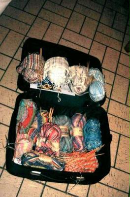 Jetzt die Bilder. Am schönsten fand ich Mariannes Ufokoffer. So viele angestrickte Socken. Und das waren noch nicht alle.