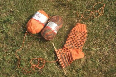 Die orangen Socken habe ich fertig.Habe mir vorgenommen zu meinen einzelnen Socken Partner zu machen ist mir auch schon gut gelungen.